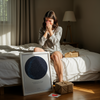 Lienzo delgado tensado, fabricado con una mezcla duradera de algodón y poliéster, estirado sobre bastidores de madera certificados por el FSC. La instalación es sencilla gracias al kit de colgado incluido. 300–350 g/m².